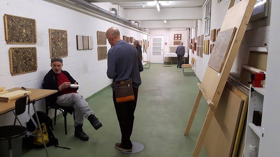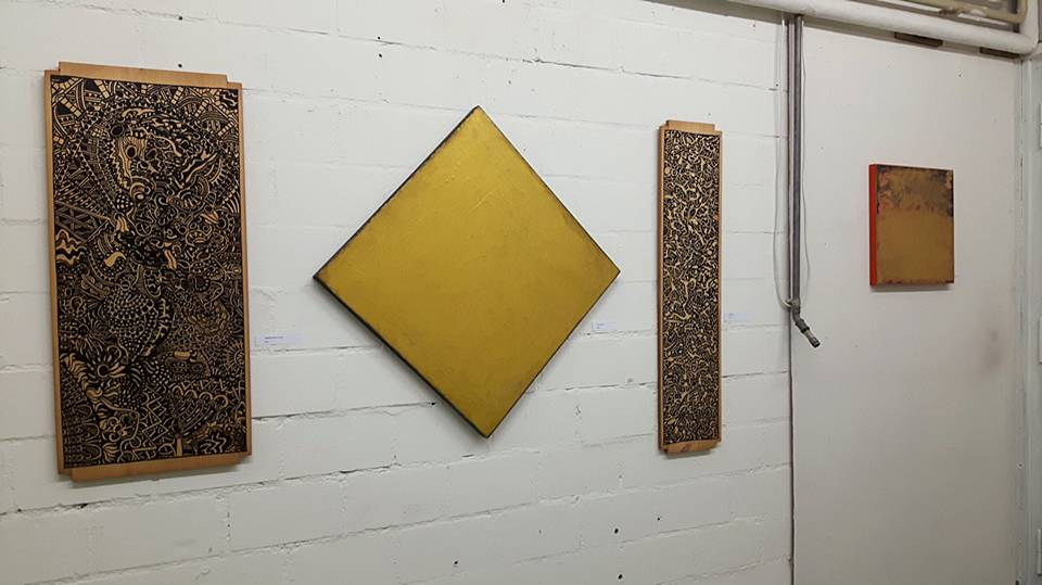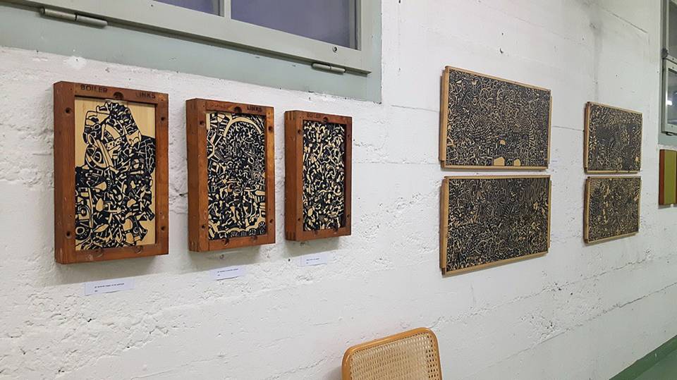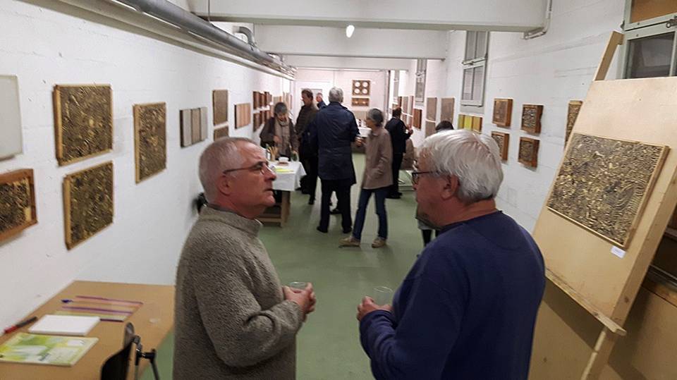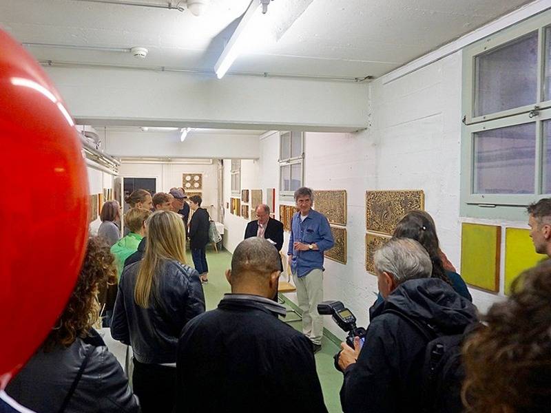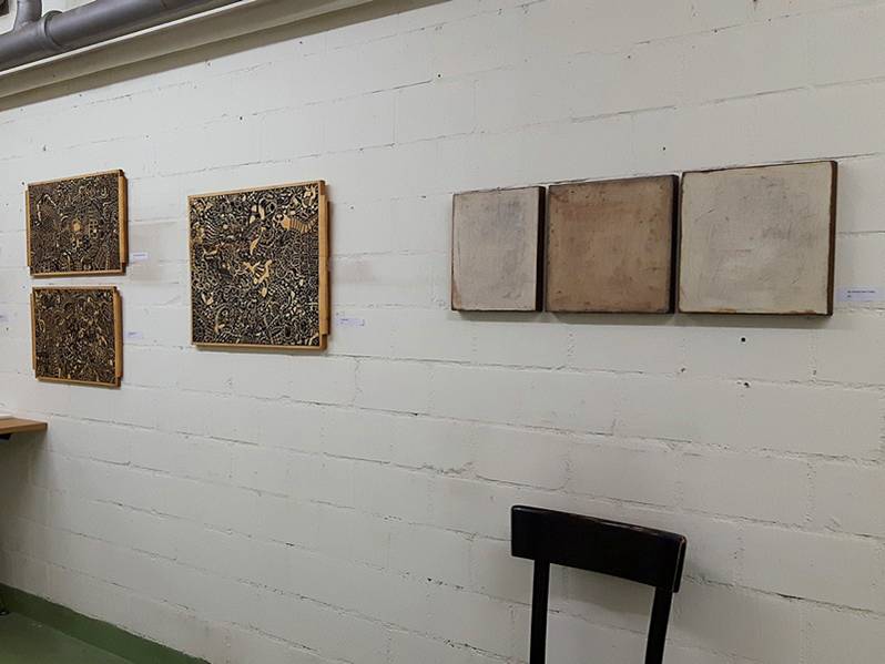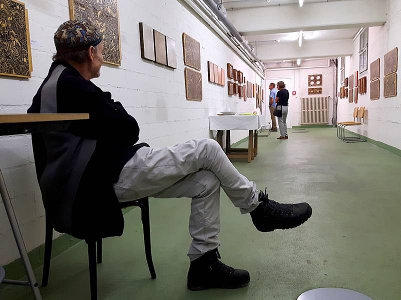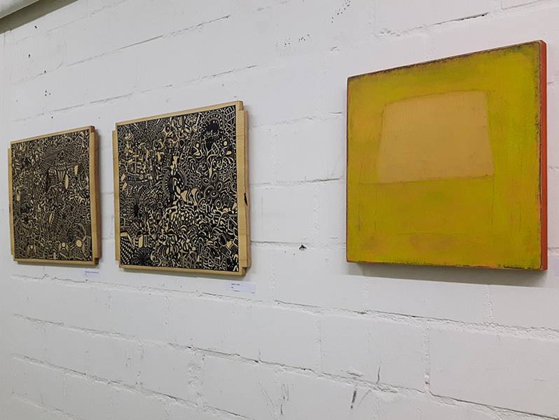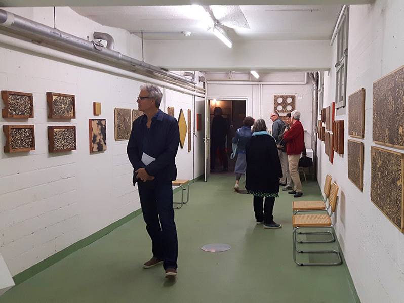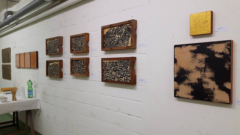 die farbigen, betont ruhigen bilder auf holz von fabio mariani wirken wie ein kontrapunkt zu den eindrücklichen, fantasievollen filzstift-zeichnungen auf alten brettern von daniel jakob. |